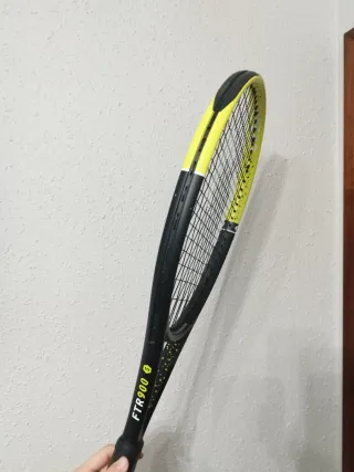 La raqueta está en muy buen estado. El marco está en perfecto estado, sin saltos de pintura, solo tiene pequeñas marcas. El protector superior está en buen estado, está poco rayado. Overgrip recién cambiado. Interesante raqueta para jugar a Frontenis dadas sus características. También es ideal para jugar a Tenis. Tanto la raqueta como la funda están perfectamente limpiadas con alcohol. Puedes encontrar más raquetas si clicas en mi perfil.