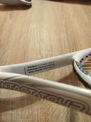 Raqueta de tenis Babolat Pure Drive 100 2025. Solamente ha sido usada en tres partidos, menos de 6 horas de uso, está prácticamente nueva. Encordada con RPM Blast a 24kg, puño 2. Es un auténtico raquetón, un 9 en todo y en potencia un 11. La mejor raqueta para el saque, de fondo la pelota sale con mucho peso y muy fácil darle profundidad. En dejada y volea es una raqueta facilísima, te lo da todo hecho, tienes la sensación de hacer lo que quieras que la respuesta es buena. La vendo por lesión de hombro, pero es una delicia. Una raqueta perfecta si buscáis jugar mejor, no es nada técnica y si no eres pro es lo ideal. Comprada por 280