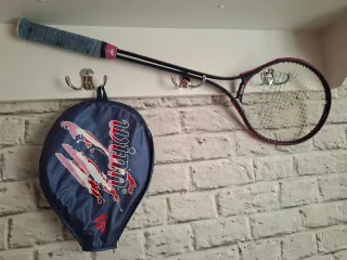 En buen estado a pesar de tener años y haber sido utilizada, todavía se puede disfrutar y mucho de ella! La empuñadura es nueva, cambiada hace poco Incluyo funda para guardar raqueta.