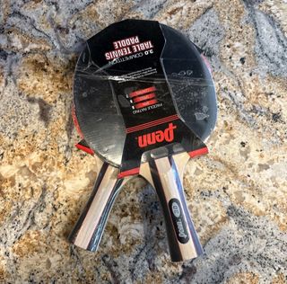 Set de dos raquetas de tenis de mesa Penn 3.0. - Modelo: 3.0 Competition. - Rating de la pala: Control 7, Spin 6, Speed 6. - Mango de madera con detalles en negro y rojo.