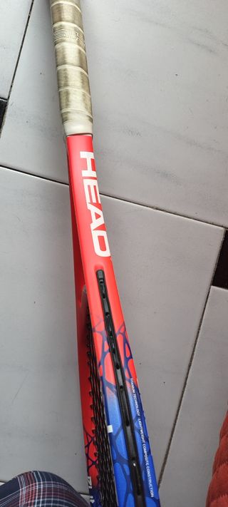 Raqueta de tenis Head en buen estado. Ideal para jugadores de nivel intermedio. - Marca: Head - Diseño: Rojo y azul - Estado: Usada, pero en buenas condiciones.