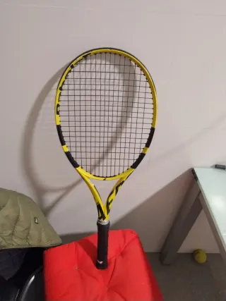 Raqueta de tenis Babolat pure aero la de 300 gramos en muy buen estado ,poco uso. - Color amarillo y negro. - Diseño deportivo.