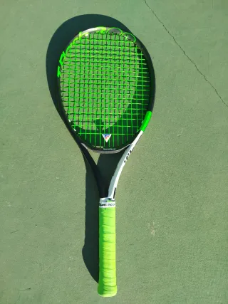 Vendo raqueta Babolat Pure Drive prácticamente nueva. Es uno de los modelos más populares y reconocidos del mundo del tenis, utilizada por jugadores profesionales como Garbiñe Muguruza y Fabio Fognini, entre otros. Pesa 300 gr. Tamaño de grip 2. Recién encorda a 25 kg. La raqueta ofrece una excelente combinación de potencia, control y salida de bola, con muy buenas sensaciones tanto desde el fondo de pista como en el juego ofensivo. Es una raqueta muy versátil, adecuada para jugadores de nivel medio y avanzado. Está en estado casi nuevo, con muy poco uso. Se vende únicamente por falta de uso. Entrega en mano o envío por wallapop