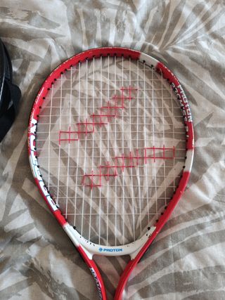 Raqueta de tenis de niños, la pala es de 30 cm de largo x 24 de ancho y el mango es de 22cm. Tengo dos iguales, llevan funda