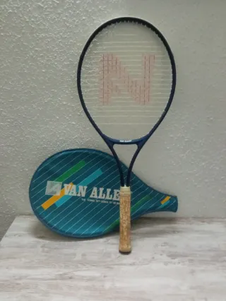Raqueta de tenis de la marca Van Allen. - Color azul marino. - Funda de transporte a juego con diseño de rayas.