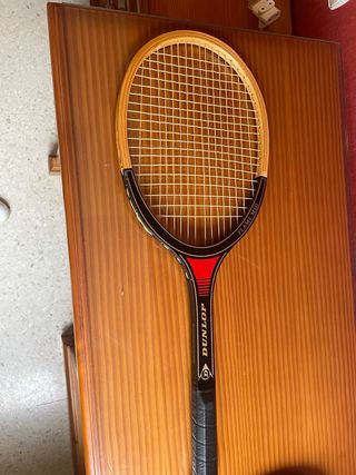 Raqueta de tenis vintage Dunlop Slazenger. - Marco de madera. - Empuñadura de cuero. - Incluye funda protectora Dunlop.