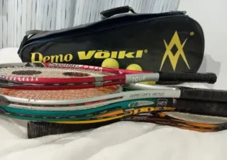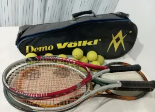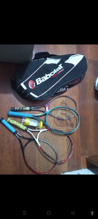Se vende lote de raquetas de tenis, ideal para jugadores de todos los niveles. Incluye 10 pelotas de regalo y estuche para poder meter todo. Alguna raqueta si quieres le cambias el agarre. - Raquetas de diferentes marcas y modelos. - Incluye bolsa de transporte. - Pelotas de tenis de regalo.