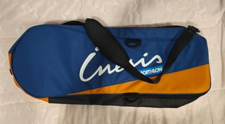 Poco uso. Tiene bolsillos para las pelotas. Con correas para colgar o coger con la mano. Dos cremalleras para dos raquetas