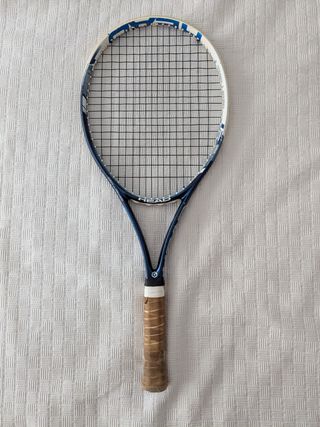 Raqueta de tenis Dunlop con funda. - Marco de color azul. - Empuñadura negra.