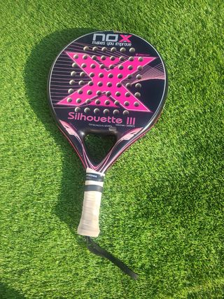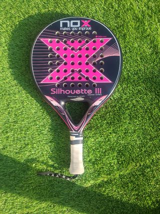 Raqueta de pádel Nox Silhouette III, en buen estado. Ligera y manejable, ideal para jugadoras. Es de Carbono. - Modelo: Silhouette III de la serie Mujer. - Diseño en España. - Marco ligero.
