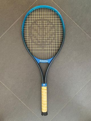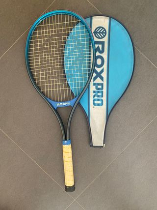 Se vende raqueta de tenis ROXPRO con su funda original. Ideal para uso recreativo, principiantes o como raqueta de repuesto. Está en buen estado estructural y el cordaje montado, pero no tiene grip, como se aprecia en las fotos (sería recomendable poner uno nuevo). La funda está incluida y en buen estado. Buena opción para alguien que empieza o para tener una segunda raqueta económica. Para cualquier pregunta no dude en escribirme.
