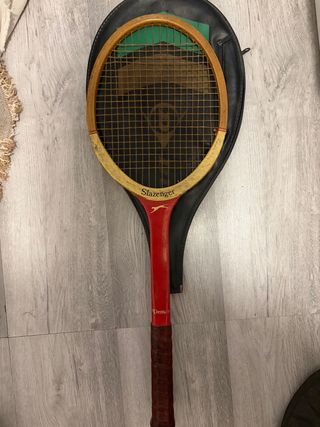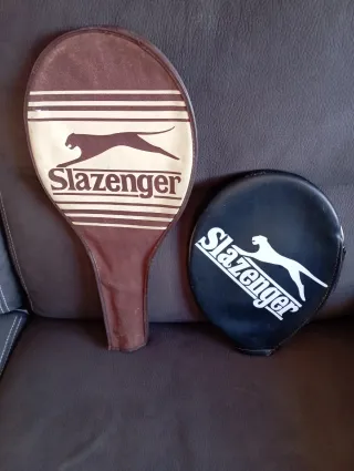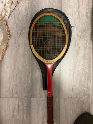 Raqueta de tenis de la marca Slazenger. - Marco de madera. - Funda protectora incluida.