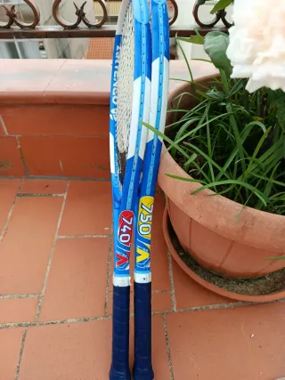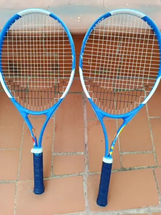 Se venden dos raquetas de tenis en buen estado. - Color azul con detalles blancos. - Mangos de agarre azul oscuro.