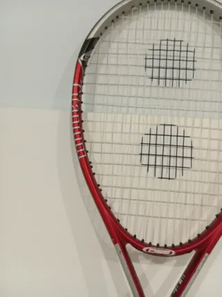 Raqueta de tenis de color rojo, lista para jugar. Incluye dos pelotas. Está como nueva. - Marco de color rojo y plateado. - Cuerdas blancas. - Empuñadura negra.