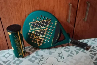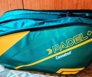 Se vende paletero de pádel con raqueta y un bote de pelotas. - Paletero de color verde. - Raqueta de pádel. - Bote de pelotas de pádel.