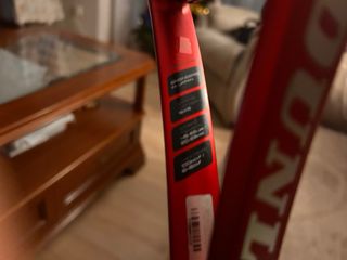 Raqueta de tenis Dunlop de color rojo. - Marco de color rojo. - Cuerdas blancas. - Grip rojo. Se encuentra en perfecto estado aunque tiene marcas debido a su uso.
