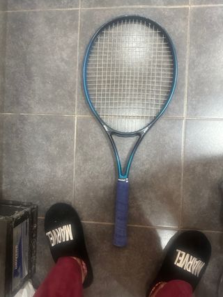 Raqueta de Tenis de la marca Prince. Escucho ofertas. - Marco de color azul y negro. - Cuerdas blancas.