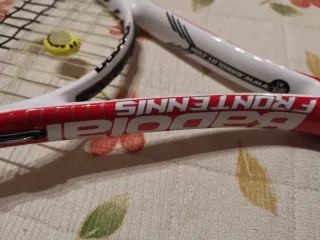 Raqueta de frontenis de la marca Babolat, usada en tres ocasiones, un pequeño rasguño apenas apreciable. - Diseño deportivo. - Marco resistente. - 275 gramos. - Incluye Funda con cremallera.