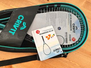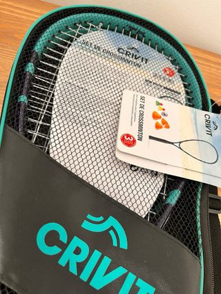Set de crossminton Crivit para jugar en la playa o en cualquier lugar. Incluye todo lo necesario para dos jugadores. - Material de las raquetas: Aluminio. - Incluye bolsa de transporte. - Apto para 2 jugadores. Envios a traves de Wallapop