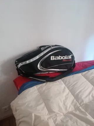 Raquetero de la marca Babolat, modelo Team. - Color negro con detalles plateados. - Correa ajustable para el hombro. - capacidad para 6 - 8 raquetas.