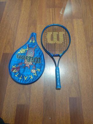 la regalo por compras superiores a 10€ raqueta de tenis antigua pero perfectamente funcional, de muy buena marca Wilson y aún le quedan largas horas de diversión ideal para jugar con tus hijos a un precio muy reducido, también puedes jugar a pádel con ella doy gratis la funda, regalo la funda con la compra de la raqueta hago envíos o entrego en barcelona