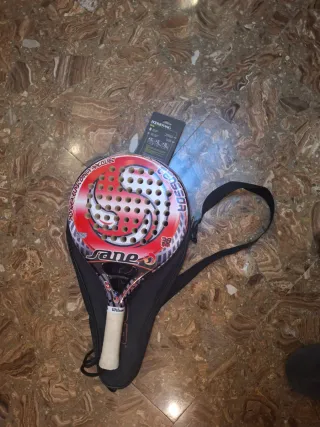 Raqueta de pádel de la marca Jane, ideal para jugar. - Diseño con detalles en rojo y blanco. - Incluye funda protectora negra.