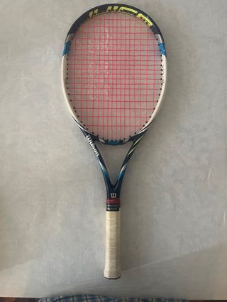 Raqueta de tenis Wilson. - Modelo Ultra Rxt 105. - Peso de 279g - Para principiantes Raqueta comprada hace un año por 75 euros Tiene muy pocos usos y dañada solo en la parte de arriba El grip tiene ese color de haber jugado en arcilla, se puede cambiar La vendo porque me compré otra