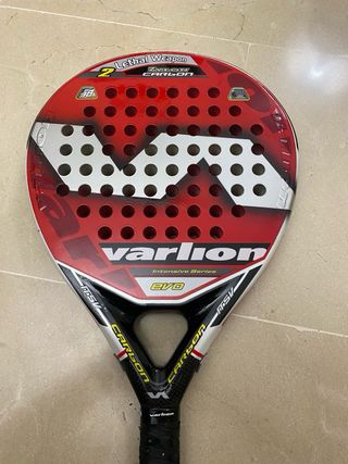 Raqueta de pádel Varlion Lethal Weapon. - Modelo: 2 Lethal Weapon Carbon Zylon. - Grosor: 38mm. - Serie: Intensive Series. - Modelo: EVO. - Necesita cinta empuñadura nueva, la tiene gastada por el tiempo, no por el uso - Incluye funda