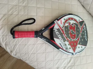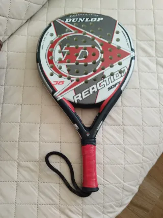 Raqueta de pádel Dunlop Reaction Soft. - Diseño con detalles en rojo y gris. - Empuñadura roja. - Cordón de seguridad negro.