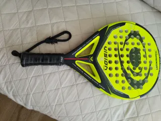 Raqueta de pádel Dunlop Cross con funda. - Diseño en azul, blanco y amarillo. - Incluye funda de transporte azul. - Marca: Dunlop. - Modelo: Cross.