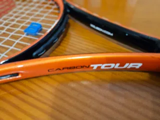Raqueta de tenis vintage de la marca Donnay, un clásico para coleccionistas o jugadores que buscan un estilo retro. - Diseño icónico de la marca. - Incluye funda protectora original con detalles de colores.