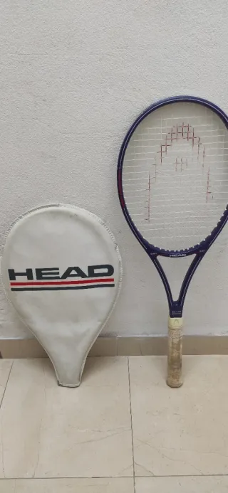 Raqueta de tenis de la marca HEAD, ideal para jugadores de todos los niveles. Incluye funda protectora. - Marco azul y blanco. - Cuerdas blancas. - Funda negra con asa.