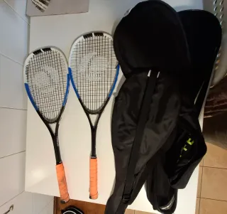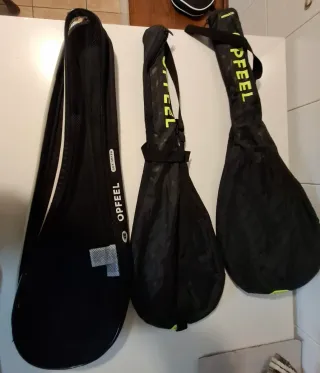 Se vende un set de 2 raquetas de squash de la marca OPFEEL, cada una con su funda protectora y otra para guardar las dos. - Raquetas de squash. - Incluye 3 fundas. - Marca OPFEEL.