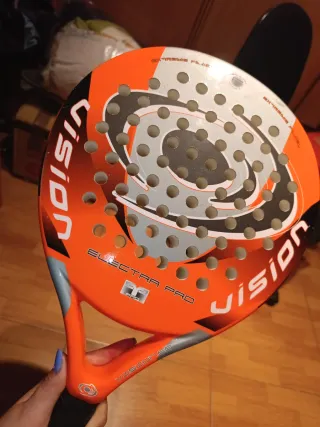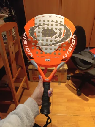 Raqueta de pádel Vision Electra Pro en color naranja y gris. Se incluye la funda. - Marca Vision. Modelo Electra Pro. -Se muestra desperfecto en el mango (no afecta a la jugabilidad)
