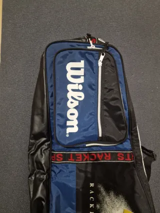 Raquetero de la marca Wilson sin estrenar, varios compartimentos y espacio interior para varias raquetas. Material de calidad tanto exterior como interior.