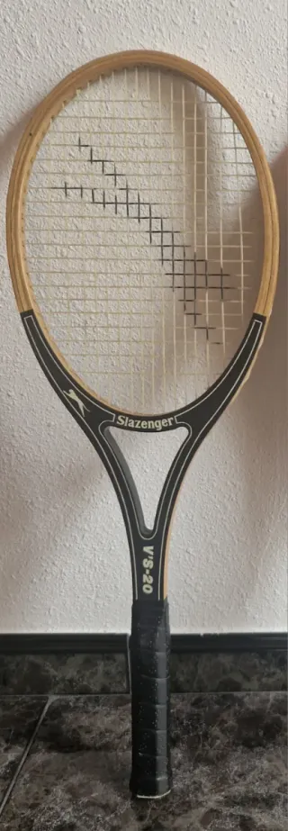 Raqueta de tenis vintage de la marca Slazenger. - Modelo VS-20. - Marco de madera. - Cuerdas de nailon.