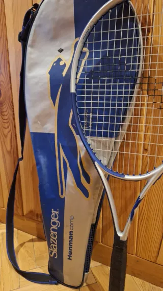 Raqueta de tenis Slazenger modelo Henman Comp con funda. - Diseño en azul y plateado. - Funda con correa. - Marca Slazenger.