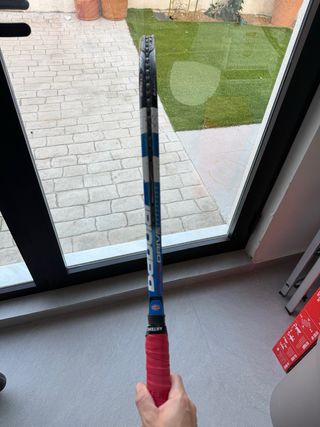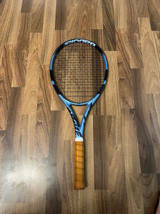 Raqueta de tenis Babolat Pure Drive 100. No incluye grip de cuero Raqueta accesible para todo tipo de jugadores, orientada a ofrecer potencia. Usada desde septiembre dandole un uso limitado. No me adapto a ella. Cabeza 100 Encordada con Babolat RPM Puño 4 300g Balance 320 Patrón de cordaje 16x19