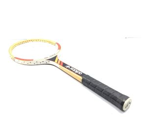 Raqueta de tenis antigua, creo que, por el tamaño es de hombre. Totalmente nueva, no tiene ningún defecto. Viene con funda y una correa para transportarla. La funda está un poco pasada por el tiempo que lleva guardada pero la raqueta está nueva.