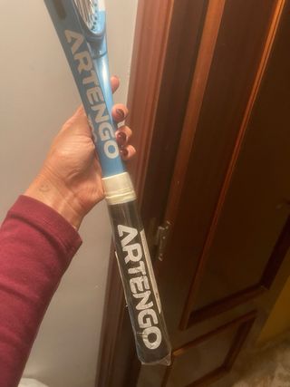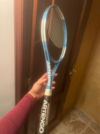 Raqueta de tenis de la marca ARTENGO, comprada en Decathlon. - Diseñada para adultos. - Color azul y blanco.