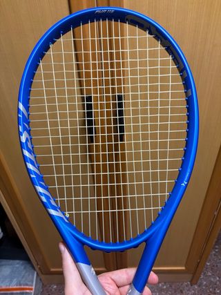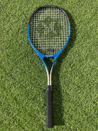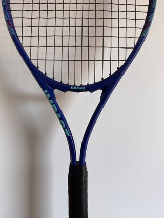 Raqueta de tenis Wilson Impact TNS. Raqueta de iniciación, usada unas diez veces. Comprada y encordada en marzo - Marco de color azul con detalles rojos en la parte superior. - Raqueta encodada. - Empuñadura negra. Talla empuñadura, características y descripción en las imágenes.