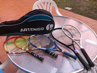 Conjunto de raquetas de tenis de diferentes marcas y colores. - Raquetas Artengo y Babolat. - Incluye funda de transporte Artengo. - Diseños variados.