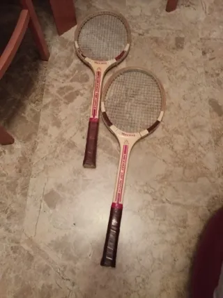 Se venden un par de raquetas de madera antiguas, ideales para coleccionistas o decoración. - Material: Madera. - Diseño clásico.