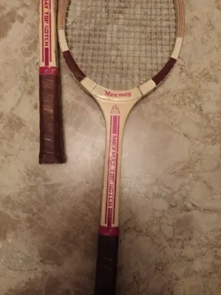 Par de raquetas de tenis antiguas, ideales para coleccionistas o para un toque retro. POR LIQUIDACIÓN DE TODOS MIS ARTÍCULOS.,,MIRA TODO LO QUE TENGO EN MI PERFIL,,SE ENTREGAN EN MANO EN BARRIO DE LA JOTA,,NO ENVÍO,,PRECIO DE LAS 2 15€ - Diseño clásico de madera. - Marca Mexmay visible en el marco. - Cuerdas en buen estado aparente.