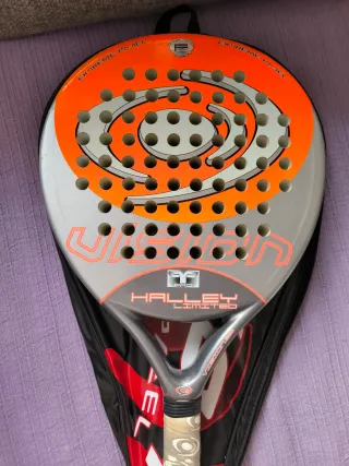ENTREGA EN MANO EN ZARAGOZA. Pala de pádel con funda incluida, con diseño de Estrella Damm. - Pala de pádel roja. - Funda blanca y roja con logo. - Diseño con estrella dorada en el centro.
