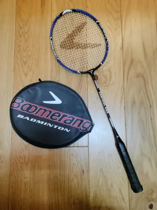 Raqueta de bádminton de la marca Boomerang, ideal para jugadores de todos los niveles. Incluye funda protectora. - Diseño con marco azul y negro. - Empuñadura negra. - Funda negra con logo Boomerang y BADMINTON. - Marcas de uso.