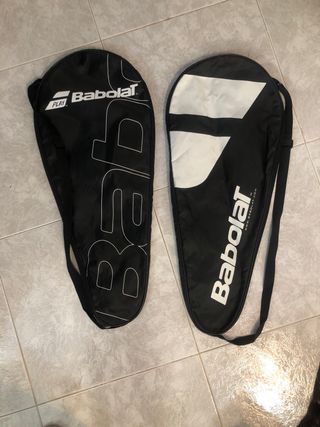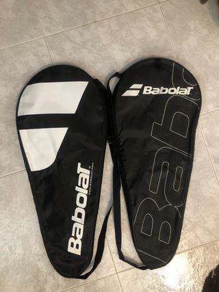 Dos fundas para raquetas de tenis o pádel de la marca Babolat. - Color negro. - Diseño con logo Babolat. - Incluye correa para colgar.