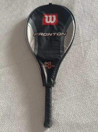 Raqueta de frontenis Wilson. - Modelo Fronton. - Diseño en negro y plateado. - Funda protectora incluida.