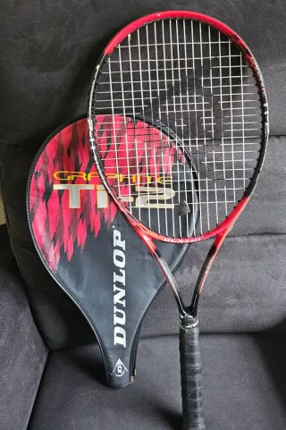 Se vende raqueta de tenis de grafito marca Dunlop con funda. Poco uso. Roces típicos del juego. Posibilidad de envío o entrega en mano en Madrid o Aranjuez. Más artículos en mi perfil.