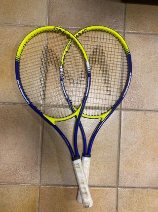 Se venden dos raquetas de tenis Boomerang. - Modelo Pro-Aluminium Series. - Combinación de colores amarillo y azul. - Empuñaduras blancas.